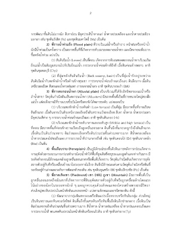 2) ที่ราบน้ าท่วมถึง (Flood plain) ที่ราบริมแม่น้ าหรือล าธาร หน้าฝนหรือหน้าน้ า
