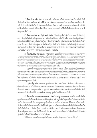 1) ที่ราบน าท่วมถึง (Flood plain) ที่ราบริมแม่น้ าหรือล าธาร หน้าฝนหรือหน้าน้ า มักมี