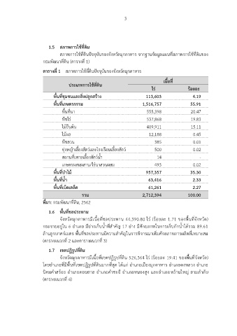 ตารางที่ 1 สภาพการใช้ที่ดินปัจจุบันของจังหวัดมุกดาหาร