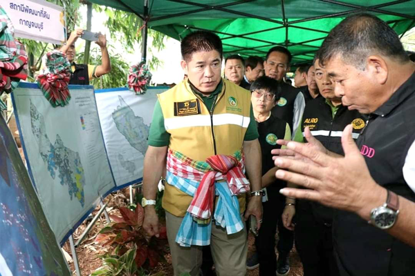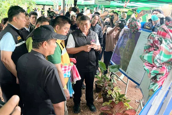 จากนั้น รมว.เกษตรฯ ลงพื้นที่ตรวจเยี่ยมพื้นที่ทำการเกษตรของนายพรชัย ค้ำชู สมาชิกสหกรณ์การเกษตรในเขตปฏิรูปที่ดินตำบลสิงห์ จำกัด หมู่ 5 ตำบลสิงห์ อำเภอไทรโยค จังหวัดกาญจนบุรี ซึ่งเป็นพื้นที่โครงการ คทช. ตลอดจนเยี่ยมชมนิทรรศการด้านการดำเนินงานของหน่วยงานในสังกัดกระทรวงเกษตรและสหกรณ์ ตามโครงการ คทช. ในพื้นที่เขตปฏิรูปที่ดิน และพบปะสมาชิกสหกรณ์ฯ ทั้งนี้ กรมพัฒนาที่ดิน โดยสถานีพัฒนาที่ดินกาญจนบุรี ได้รับมอบนโยบายให้ดำเนินการสร้างธนาคารน้ำใต้ดิน ในงานจัดระบบอนุรักษ์ดินและน้ำ และปรับปรุงโครงสร้างดินเฉพาะหลุมเพื่อปลูกไม้ยืนต้น ในพื้นที่ของโครงการจัดที่ดินทำกินให้ชุมชนตามนโยบายรัฐบาล (คทช.)