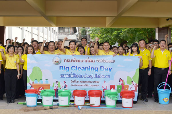 วันอังคารที่ 21 พฤษภาคม พ.ศ. 2567 เวลา 9.00 น. นายปราโมทย์ ยาใจ อธิบดีกรมพัฒนาที่ดิน เป็นประธานเปิดกิจกรรม Big Cleaning Day “สถานที่ทำงาน น่าอยู่ น่าทำงาน” พร้อมด้วย นายอาทิตย์ ศุขเกษม รองอธิบดีกรมพัฒนาที่ดินด้านวิชาการ และนายอนุวัชร โพธินาม รองอธิบดีกรมพัฒนาที่ดินด้านปฏิบัติการ นำคณะผู้บริหาร ข้าราชการ และเจ้าหน้าที่กรมพัฒนาที่ดิน ร่วมกันทำความสะอาดอาคารสถานที่ และจัดเก็บขยะพื้นที่โดยรอบ ตามแนวทาง 5 ส. (สะสาง สะดวก สะอาดสุขลักษณะ และสร้างนิสัย) เพื่อปลุกจิตสำนึกในความมีระเบียบวินัยของบุคลากร สร้างบรรยากาศที่ดีภายในองค์กรให้น่าอยู่ น่าทำงาน จนเกิดความประทับใจแก่ผู้มาติดต่อสถานที่ราชการหรือผู้มาใช้บริการ