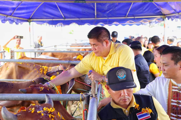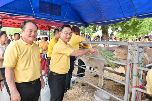 วันอาทิตย์ที่ 23 มิถุนายน พ.ศ. 2567 นายอาทิตย์ ศุขเกษม รองอธิบดีกรมพัฒนาที่ดินด้านวิชาการ พร้อมด้วย นายสมบูรณ์ ธิจันทร์ ผู้อำนวยการสำนักงานพัฒนาที่ดินเขต 6 คณะผู้บริหารและข้าราชการหน่วยงานในสังกัดฯ ติดตาม ร้อยเอก ธรรมนัส พรหมเผ่า รัฐมนตรีว่าการกระทรวงเกษตรและสหกรณ์ ลงพื้นที่ตรวจราชการ พบปะเกษตรกรและรับฟังปัญหาในพื้นที่ ณ วัดบ้านแก่นไชย ตำบลนายาง อำเภอสบปราบ จังหวัดลำปาง โดยเป็นประธานในพิธีมอบโคให้เกษตรกรยืมเลี้ยงเพื่อการผลิต ตามโครงการธนาคารโค-กระบือเพื่อเกษตรกร ตามพระราชดำริ เฉลิมพระเกียรติพระบาทสมเด็จพระเจ้าอยู่หัว เนื่องในโอกาสพระราชพิธีมหามงคลเฉลิมพระชนมพรรษา 6 รอบ 28 กรกฎาคม 2567 จำนวน 20 ตัว ให้กับเกษตรกร 20 ราย ซึ่งเป็นโครงการที่กระทรวงเกษตรฯ โดยกรมปศุสัตว์ ได้ดำเนินการร่วมกับหน่วยงานในพื้นที่จังหวัดลำปาง เพื่อช่วยเหลือเกษตรกรและส่งเสริมอาชีพการเลี้ยงโคในพื้นที่ โดยการน้อมนำหลักปรัชญาของเศรษฐกิจพอเพียง มาปรับใช้และมีการบูรณาการทำงานร่วมกันในพื้นที่อย่างเป็นระบบ เกื้อหนุนกับระบบเกษตรอินทรีย์ และเกื้อหนุนกิจกรรมในไร่นา โอกาสนี้ ได้มอบโฉนดเพื่อการเกษตรให้แก่เกษตรกร จำนวน 131 ราย และปล่อยพันธุ์สัตว์น้ำ พร้อมมอบพันธุ์สัตว์น้ำให้กับตัวแทนเกษตรกร เพื่อเพิ่มผลผลิตสัตว์น้ำลงในแหล่งน้ำธรรมชาติ