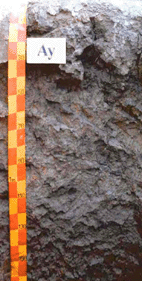สีน้ำตาลปนเทาหรือสีเทาน้ำตาล มีจุดประสีแดงปฏิกิริยาดินเป็นกรดจัด