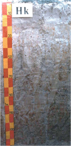 สีเทา สีเทาอ่อน สีเทาปนชมพู มีจุดประสีน้ำตาลแก่หรือสีน้ำตาลปนเหลืองในดินบนและปฏิกิริยาดินเป็นกรดจัดถึงกรดปานกลาง