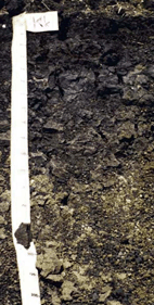 ดินบนเป็นดินเหนียวสีดำหรือสีเทาเข้ม จุดประสีน้ำตาลเข้ม