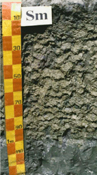 สีเทาเข้มหรือสีน้ำตาลปนเทา ปฏิกิริยาดินเป็นกรดเล็กน้อยถึงด่านปานกลาง