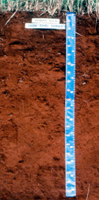 สีน้ำตาลปนแดงเข้มมาก ดินล่างเป็นดินเหนียว สีแดงหม่นหรือสีแดงหม่นเข้มมาก
