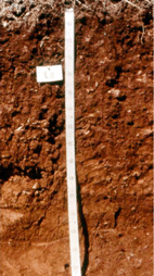 สีน้ำตาลปนแดง สีน้ำตาลปนแดงเข้มและสีแดงในดินล่างลึกลงไป