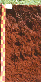 ดินเหนียว สีแดงหรือสีแดงเข้ม ปฏิกิริยาดินเป็นกรดจัดมากถึงเป็นกรดเล็กน้อย