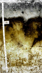 50-100 ซม. จากผิวดิน มีสีน้ำตาลเข้มหรือสีน้ำตาลปนแดงที่เป็นชั้นสะสมฮิวมัสและอะลูมินั่มหรือมีเหล็กด้วย