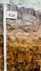 ดินล่างมีเนื้อดินเป็นดินเหนียวปนก้อนกรวด มีสีเทา