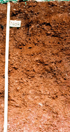 มีสีแดงเข้ม ปฏิกิริยาดินเป็นกรดจัดมากถึงกรดจัดปานกลาง