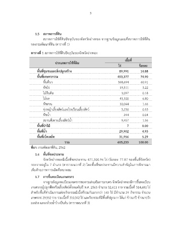 ตารางที่ 1 สภาพการใช้ที่ดินปัจจุบันของจังหวัดอ่างทอง
