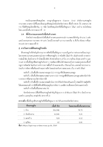 ตารางที่ 2 พื้นที่ปลูกพืชเศรษฐกิจที่มีพื้นที่ปลูกมาก 4 ล าดับแรกของจังหวัดอ่างทอง