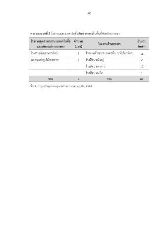 ตารางผนวกที่ 5 โรงงานและแหล่งรับซื้อสินค้าเกษตรในพื้นที่จังหวัดอ่างทอง