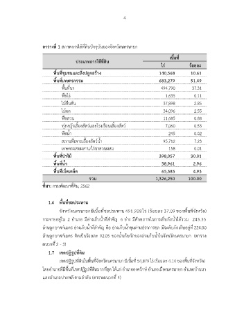 ตารางที่ 1 สภาพการใช้ที่ดินปัจจุบันของจังหวัดนครนายก
