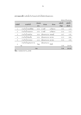 ตารางผนวกที่ 3 ระดับน้ำเก็บกักของอ่างเก็บน้ำในจังหวัดนครนายก