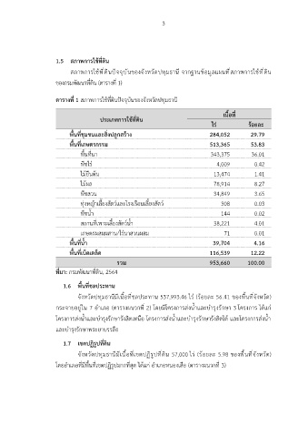 ตารางที่ 1 สภาพการใช้ที่ดินปัจจุบันของจังหวัดปทุมธานี