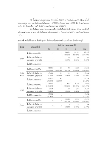 (1) พื้นที่เหมาะสมสูงคงเหลือ (S1) มีเนื้อ 96,855 ไร คิดเปนรอยละ 55.64 ของพื้นที่