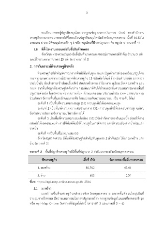 ตารางที่ 2 พื้นที่ปลูกพืชเศรษฐกิจที่มีพื้นที่ปลูกมาก 2 ล าดับแรกของจังหวัดสมุทรสงคราม