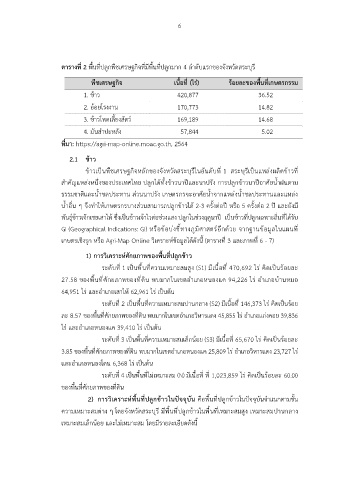 เกษตรเชิงรุก หรือ Agri-Map Online วิเคราะห์ข้อมูลได้ดังนี้ (ตารางที่ 3 และภาพที่ 6 - 7)