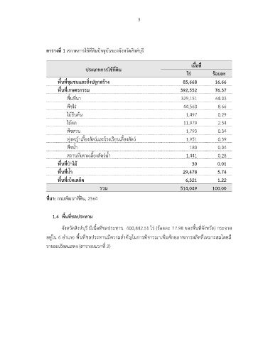 ตารางที่ 1 สภาพการใช้ที่ดินปัจจุบันของจังหวัดสิงห์บุรี