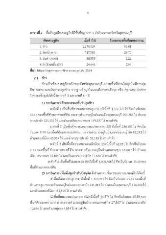ตารางที่ 2 พื้นที่ปลูกพืชเศรษฐกิจที่มีพื้นที่ปลูกมาก 4 ลำดับแรกของจังหวัดสุพรรณบุรี