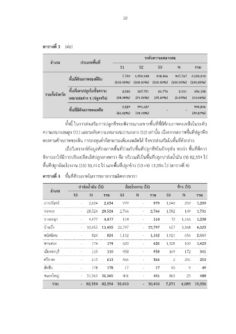 พื้นที่ปลูกอ้อยโรงงาน (S3) 30,410 ไร่ และพื้นที่ปลูกข้าว (S3+N) 13,356 ไร่ (ตารางที่ 4)