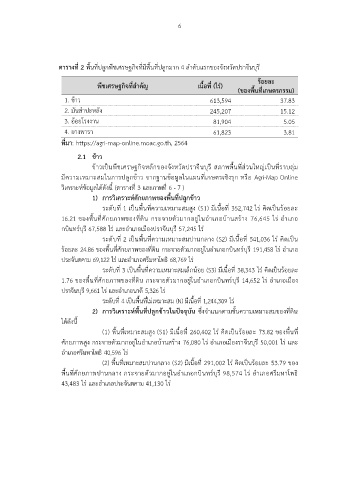ตารางที่ 2 พื้นที่ปลูกพืชเศรษฐกิจที่มีพื้นที่ปลูกมาก 4 ล าดับแรกของจังหวัดปราจีนบุรี