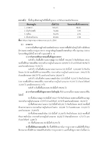 ตารางที่ 2 พื้นที่ปลูกพืชเศรษฐกิจที่มีพื้นที่ปลูกมาก 4 ลำดับแรกของจังหวัดระยอง