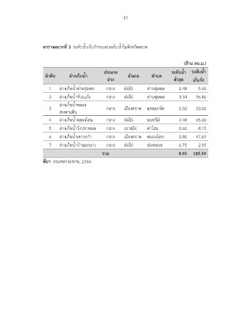 ตารางผนวกที่ 3 ระดับน้ าเก็บกักของอ่างเก็บน้ าในจังหวัดตราด