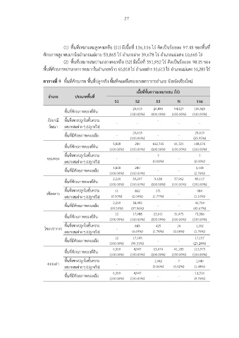 (1) พื้นที่เหมาะสมสูงคงเหลือ (S1) มีเนื้อที่ 136,116 ไร คิดเปนรอยละ 97.45 ของพื้นที่