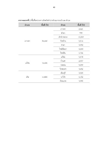 อําเภอ พื้นที่ (ไร) ตําบล พื้นที่ (ไร)