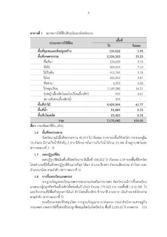 ตารางที่ 1 สภาพการใชที่ดินปจจุบันของจังหวัดนาน
