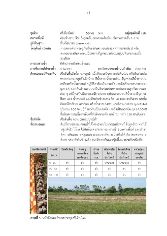 ข้อเสนอแนะ ดินมีโอกาสขาดแคลนน้ าได้โดยเฉพาะในช่วงฝนทิ้งหากใช้ปลูกข้าว หากใช้