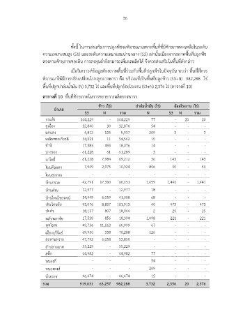 พื้นที่ปลูกปาล์มน้ํามัน (N) 3,732 ไร่ และพื้นที่ปลูกอ้อยโรงงาน (S3+N) 2,376 ไร่ (ตารางที่ 10)