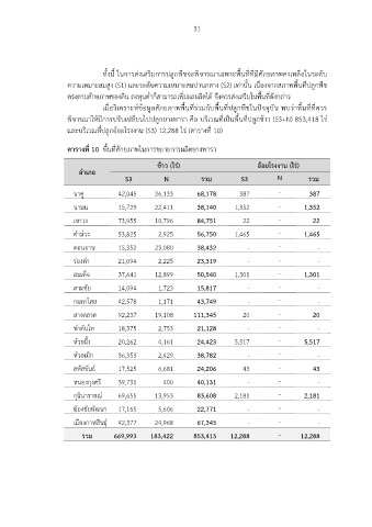 และบริเวณที่ปลูกอ้อยโรงงาน (S3) 12,288 ไร่ (ตารางที่ 10)