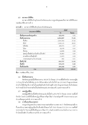 ตารางที่ 1 สภาพการใช้ที่ดินปัจจุบันของจังหวัดขอนแก่น