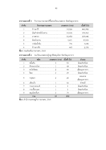 ตารางผนวกที่ 5 กิจกรรมการเกษตรที่ขึ้นทะเบียนเกษตรกร จังหวัดมุกดาหาร