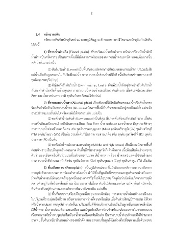 1) ที่ราบน้ําท่วมถึง (Flood plain) ที่ราบริมแม่น้ําหรือลําธาร หน้าฝนหรือหน้าน้ํามักมี