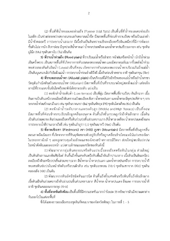 3) ที่ราบน้ำท่วมถึง (Flood plain) ที่ราบริมแม่น้ำหรือลำธาร หน้าฝนหรือหน้าน้ำ มักมีน้ำท่วม