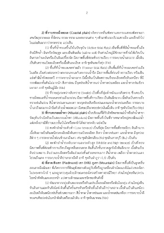 2) ที่ราบชายฝั่งทะเล (Coastal plain) เกิดจากคลื่นพัดพาและกระแสลมพัดพาเอา