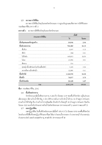 ตารางที่ 1 สภาพการใช้ที่ดินปัจจุบันของจังหวัดระนอง