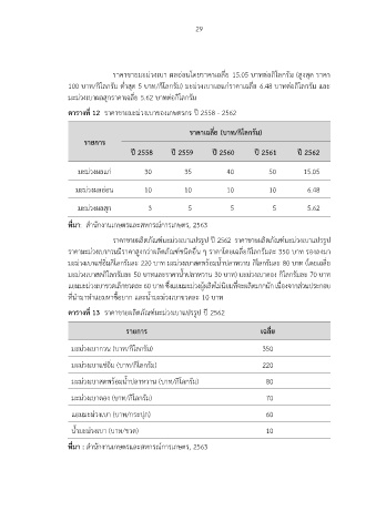 ตารางที่ 12 ราคาขายมะม่วงเบาของเกษตรกร ปี 2558 - 2562