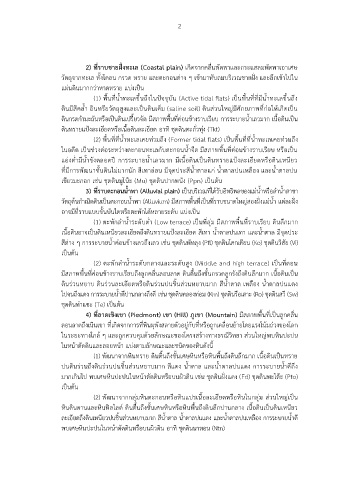 2) ที่ราบชายฝั่งทะเล (Coastal plain) เกิดจากคลื่นพัดพาและกระแสลมพัดพาเอาเศษ