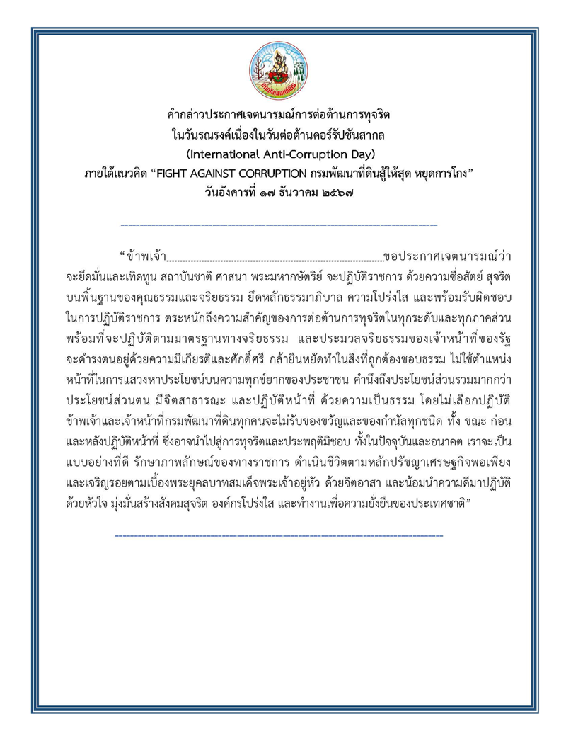 AGAINST CORRUPTION กรมพัฒนาที่ดินสู้ให้สุด หยุดการโกง
