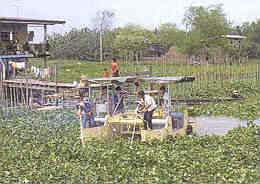 According to a royal comment concerning the advantage of water hyacinth, Makkasan swamp is improved by planting water hyacinth 10% of water area. Divide it into stalls : 5 x 20 meters per each stall. Its purpose is to control and conserve environmental condition. Water Hyacinth can absorb metals like copper and lead from industrial sewage and living place sewage. It also can absorb mercury and lead melt in the liquid.