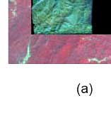 | Figure 2 : Showing an overlay of the ortho photo on the test area of the ASTER image to show that the two did not have a perfect match (a) and (b) showing an overlay of landslide boundaries from aerial photo interpretation on the classification results (bands 2,3 and 4) from digital image analysis. |
