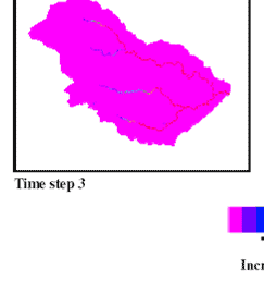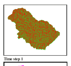 | A simple script with very few PCRaster operators was employed to simulate runoff in this case. The infiltration values introduced via the soil map had no scientific basis making the approach entirely empirical based. This approach has some advantages because of its simplicity, its minimal data requirements and its capability of providing reasonable estimates of runoff rates at different locations in a catchment. Some output maps showing the results of this modelling approach and rainfall data used are presented in figures. |