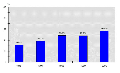 Figure 1.2.7 Thailand's export as percentage of GDP from 1996-2000